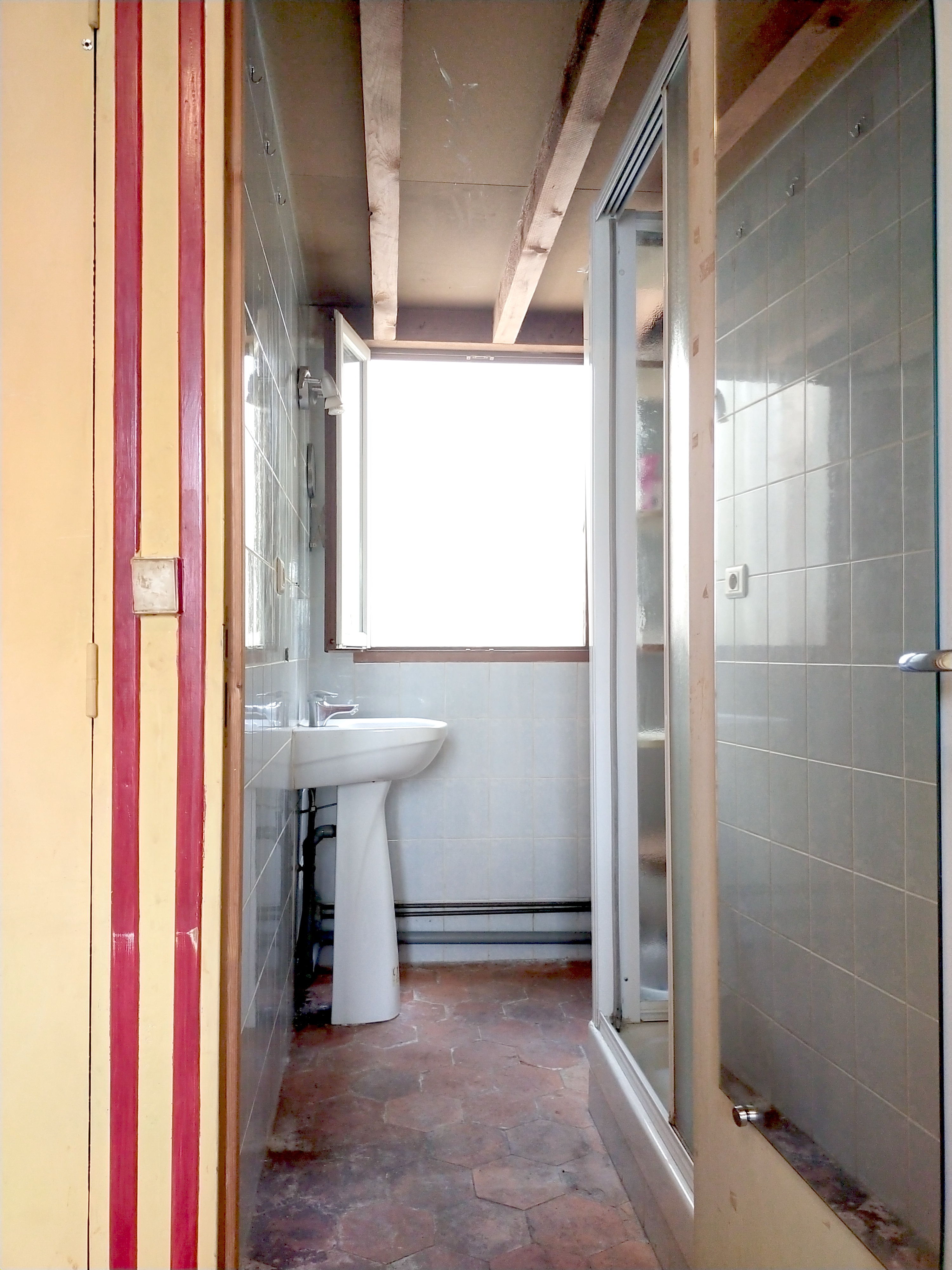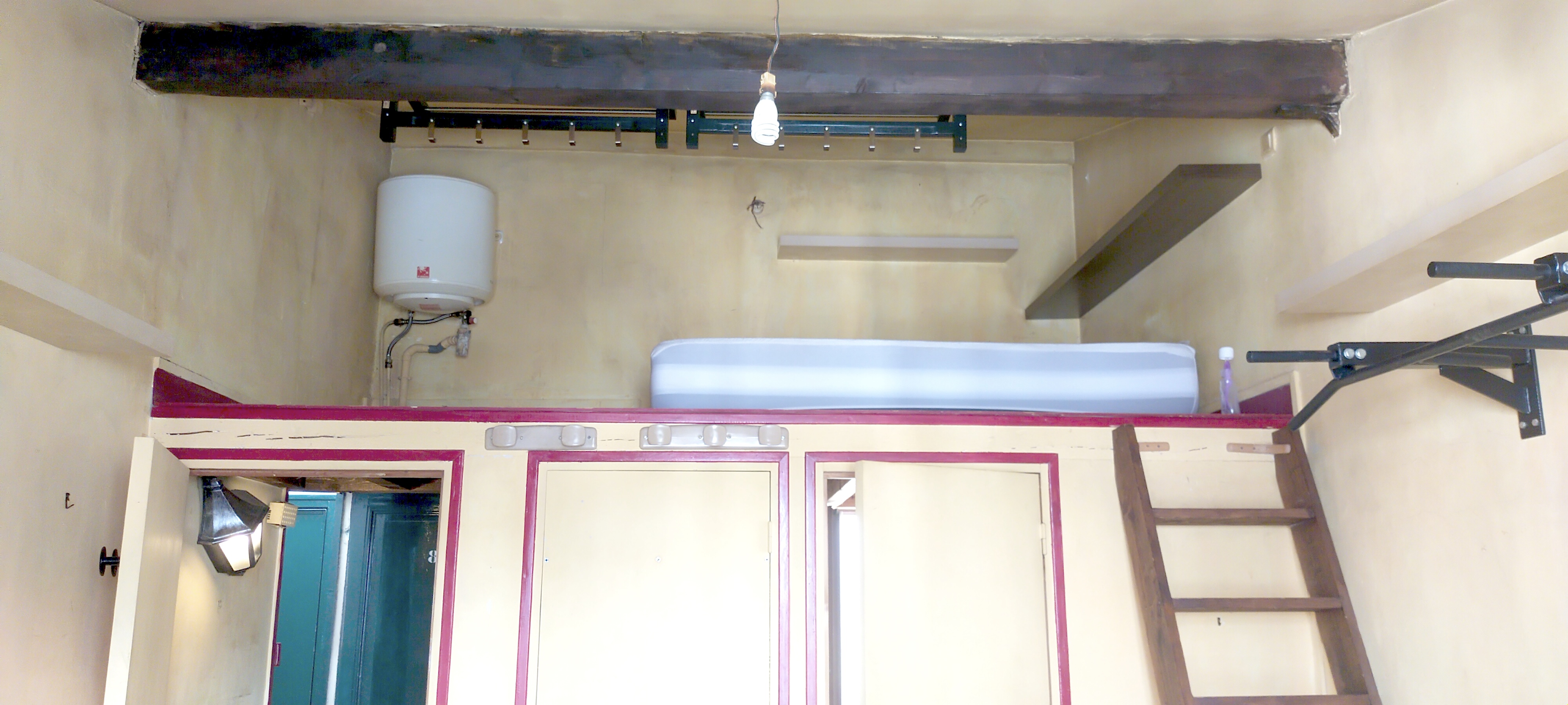 Studio de 16,48m2 ‘carrez’, 18,39m2 au sol, et 24,89m2 avec la mezzanine qui sert de couchage.